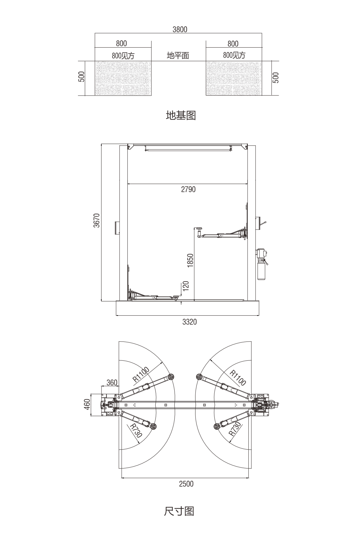 8.支臂采用兩節(jié)、三節(jié)設(shè)計,調(diào)節(jié)范圍更大,適合不同的汽車底盤,三節(jié)支臂選配安裝。